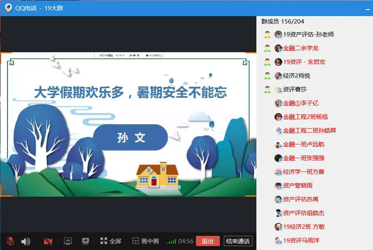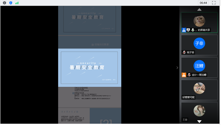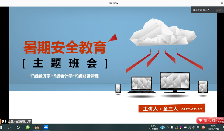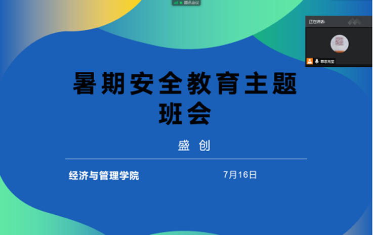 本网讯 为落实学校关于暑期安全的相关要求,提升学生暑期安全意识,切实做好暑期安全教育工作。近期,经管学院各年级召开暑期安全线上主题班会。主题班会的内容主要涉及洪涝灾害、交通安全、实习兼职、心理健康、用电安全和心理健康等方面,在提醒同学们注意暑期安全的同时,还要求同学们保持对疫情的关注,做好防疫工作。