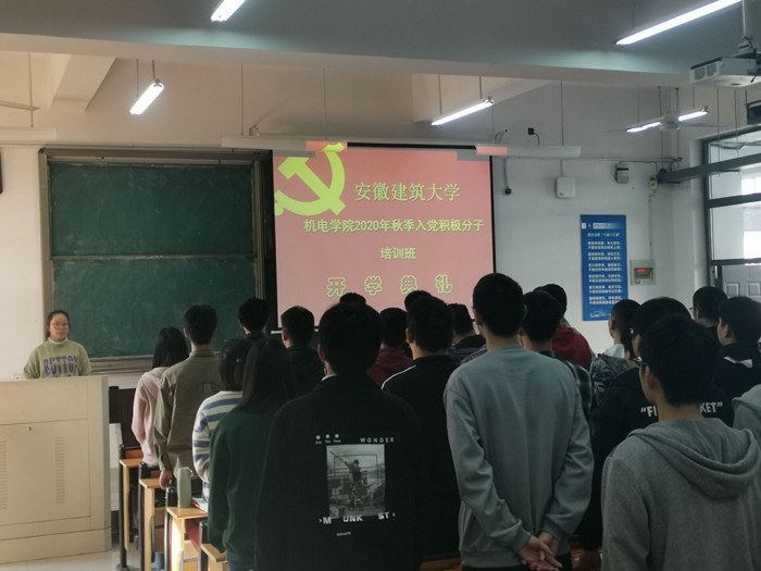 本网讯  11月11日,机电学院2020年秋季入党积极分子培训班在逸夫楼5120举行开班典礼,经过前期辅导员推荐、党支部审核确定73名入党积极分子参加本次培训班,机电学院分党校校务成员、学生支部书记参加了开班典礼。