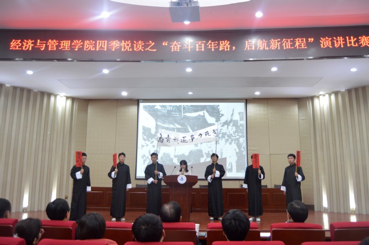 本网讯 为回顾中国共产党一百年光辉历史,弘扬伟大建党精神,强化青年使命担当,12月10日,经管学院在北区图书馆二楼报告厅举办“奋斗百年路,启航新征程”演讲比赛。校领导蔡新立和学院党政领导共同观看了本次活动。