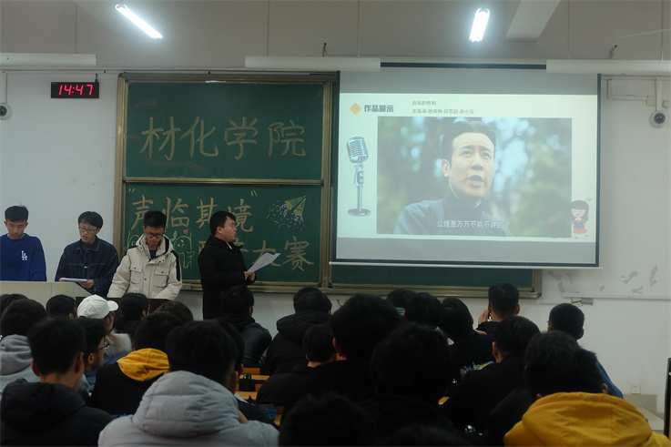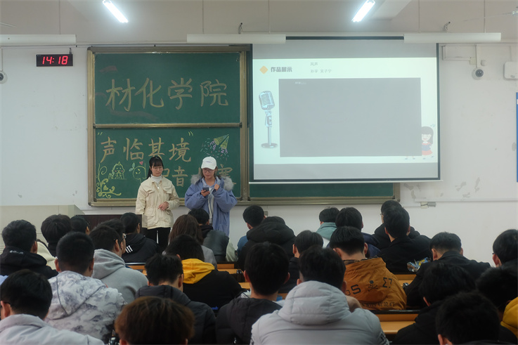 本网讯 为丰富学生课余生活,陶冶学生情操,鼓励学生积极参加课外活动,12月11日,材化学院于逸夫楼5119教室举办了“声临其境”配音大赛。