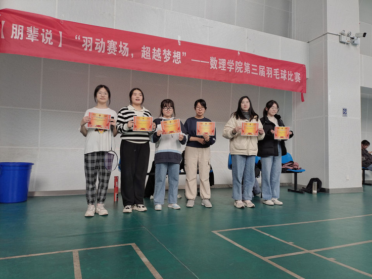 本网讯 为了促进同学们之间的交流与互动,普及和提高我院羽毛球运动水平,促进学生参与体育锻炼的积极性、增强学生的身体素质。数理学院于12月17日在学校体育馆举办“羽动赛场,超越梦想”第三届羽毛球比赛。