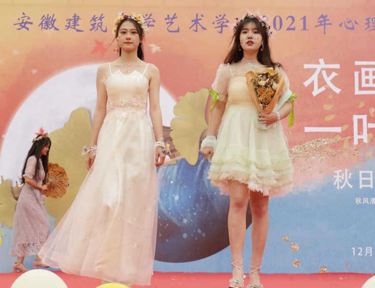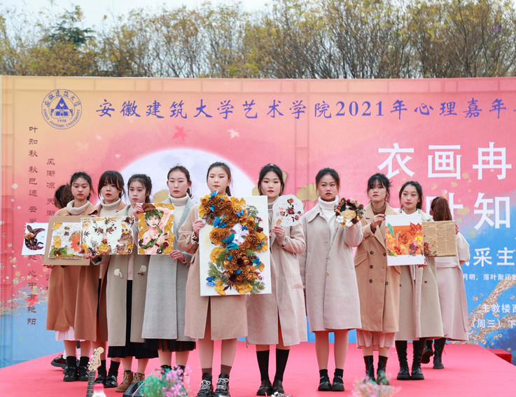 本网讯 秋风带来了一丝萧瑟,也带来了从容与温馨。生活也正如这般,有低谷与挫折,但所有的艰难都将成为成长的食粮,在毅力的泥土里埋下坚韧的种子,萌发出希望的枝叶,挺拔昂扬。为促进学生人格健全发展,培养乐观、积极向上的心理品质,艺术学院于12月15日举办“衣画冉冉,一叶知心”心理嘉年华秋日风采主题秀。张亚新副校长、团委唐志敏书记、宣传部葛建化副部长、学工部汤娜副部长以及艺术学院和兄弟学院的老师参加了本次活动。