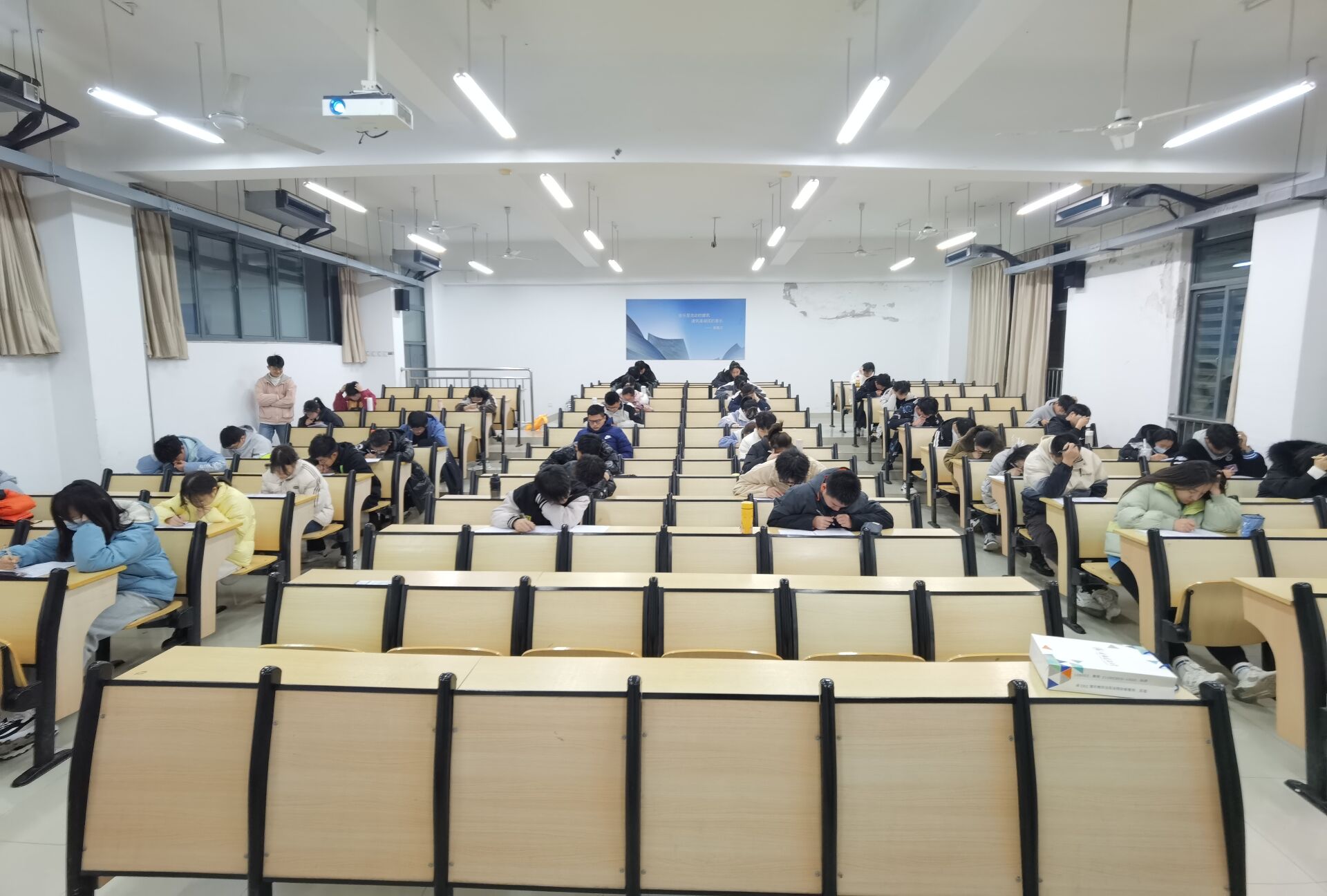 本网讯 为促进优良学风建设,帮助同学们熟悉四级考试的流程,在英语四级考试中取得较好成绩,12月14日晚,环能学院利用晚自习时间举办英语四级模拟考试,全体大一新生参加。