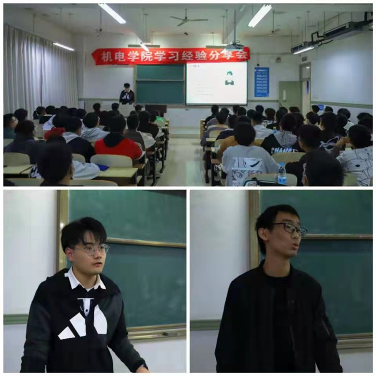 本网讯 为营造良好的学习氛围,发挥榜样引领作用,促进优良学风建设,11月15日,机电学院邀请高年级优秀学子在大一新生中开展学习榜样分享会系列活动,本次活动主要由“学习经验分享会”、“学科竞赛经验分享会”、“创新创业经验分享会”三个部分构成,分别在主楼1203、1204、1208教室开展。