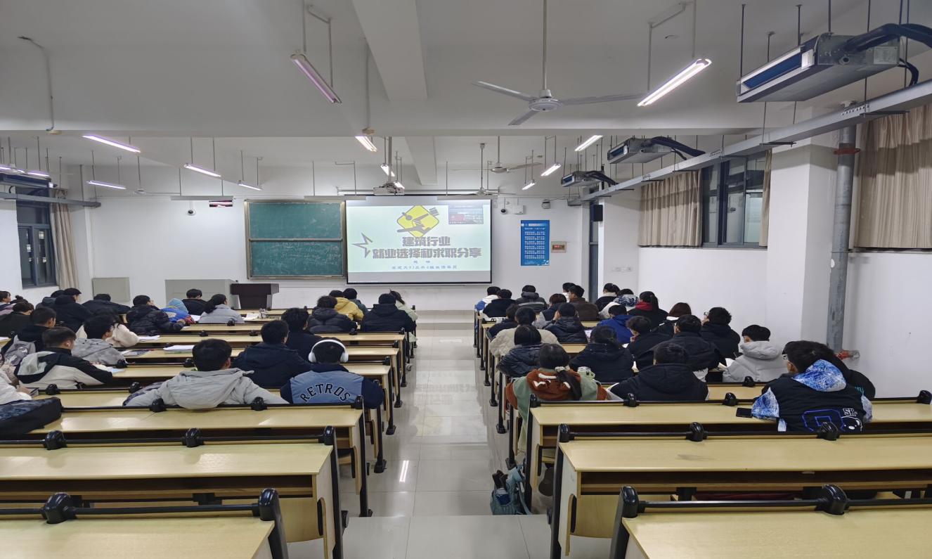 赵楠首先介绍了自己的简历,并谦逊地表示自己只是一个平平无奇的85后,他以“跑好历史接力赛”为题,结合自己在大学里的学习、成长体会和工作感悟,就如何选择就业方向、辨析企业优劣、洞察市场状况、把握创业良机与学弟学妹们进行了一次深入探讨,他综合了施工工艺发展、建筑业劳动效率、能源消耗等方面总结了建筑业发展任重道远,并以自己所在的中建科工为例,指出了行业发展的特点,使参学的同学们获益匪浅,对当前土建类专业学生就业前景有了比较详细的了解。