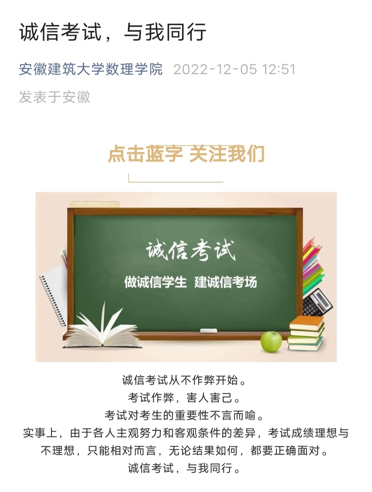 通过本次宣讲会,强化了学生的诚信考试意识,号召大家要勤奋好学、诚实守信、严谨自律,杜绝弄虚作假、徇私舞弊。让诚信考试的理念深入每一个学生心中。(作者:水天柱;审稿:胡燕青)