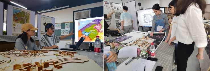 方案汇报环节中,除了图纸展板和建筑实体模型,同学们充分利用智慧教室中触控屏等电子设备更好地向评委表达自己的设计构思。汇报结束后,每位评委就设计亮点进行分别点评并对设计内容进行补充提问。在评委切中要点的提问中,学生们对设计内容进行了更深层次的诠释,并再次思考自己在设计过程是否充分考虑场地周边肌理、居民需求及设计中可优化的方向。通过答辩,毕业生们不仅向评委专家们展现了自己五年的学习成果,更体现了建筑学子们对建筑进入存量时代以来建筑设计所要解决的问题,建筑设计对人们生活方式的影响的思考。