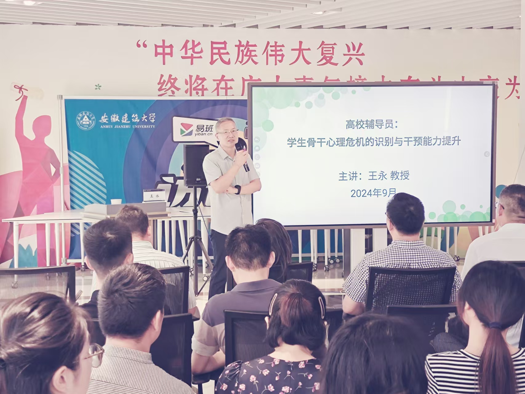 工作坊由马克思主义学院院长、心理健康教育领域专家谢建教授主持,安徽省教育厅高校大学生心理健康教育专家指导委员会委员王永教授担任主讲嘉宾,他通过理论讲授、案例分析和互动交流等多种形式,从大学生心理健康现状、大学生的危机识别,心理骨干“望闻问切”的应对策略,深入浅出地讲解了心理骨干如何做好大学生心理危机的识别与应对。