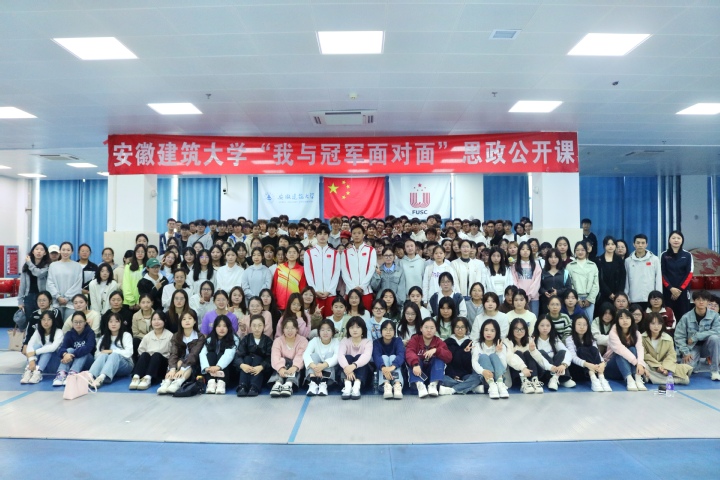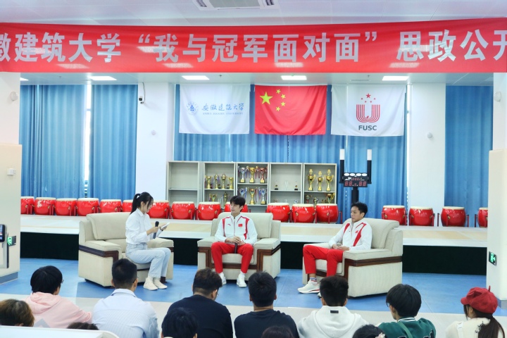 本网讯 31日上午,正值校运会开幕之际,“我与冠军面对面”思政公开课在安徽建筑大学紫云路校区击剑馆开讲。我校学子、第33届巴黎奥运会选手、中国国家男子击剑运动员吴斌、沈晨鹏回到建大,与师生们近距离互动,共同分享体育的魅力与奥运精神。