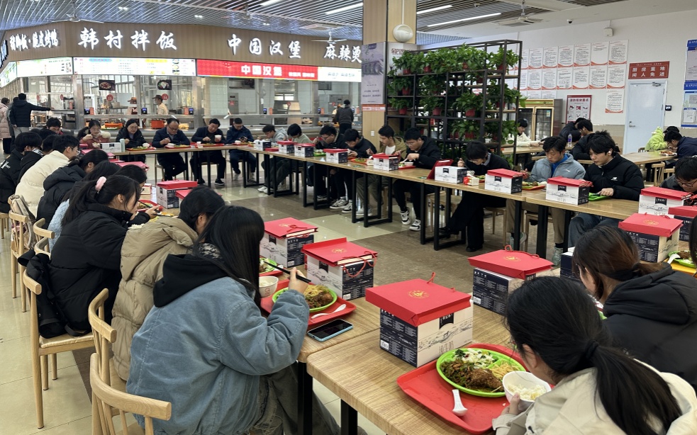 座谈会结束后,学生处向参会的学生代表赠书并发放慰问品,师生移步南园餐厅二楼食堂,共进爱心午餐。