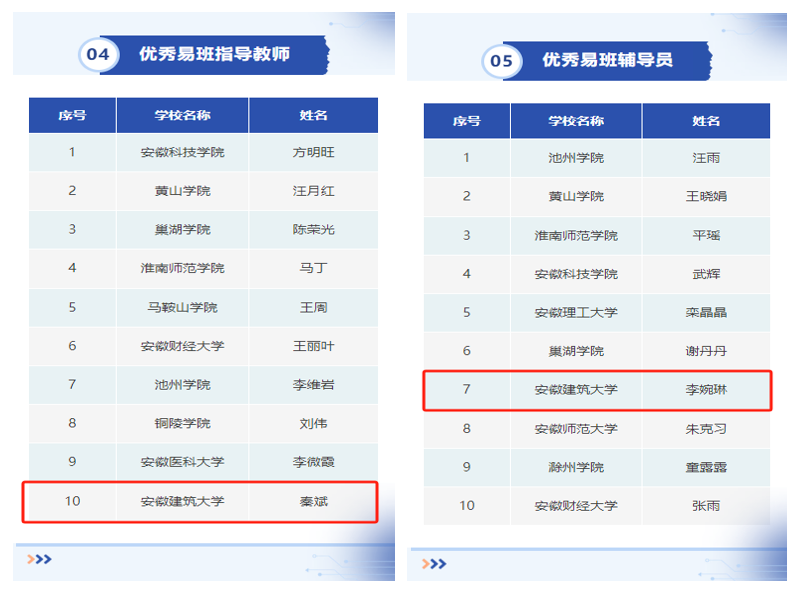 此次在安徽省高校易班共建工作年度评优推选中获得多项荣誉,是对我校易班工作的高度肯定。未来,校易班发展中心将继续加强易班平台建设,不断创新网络思政教育形式,奋力构建有时代热度、人文温度、思想深度、情感厚度和建大特色的网络思政育人阵地,为促进我校大学生成长成才贡献更多易班力量。(文/图:秦斌;一审:王梦婕;二审:汤娜;三审:徐庆和)