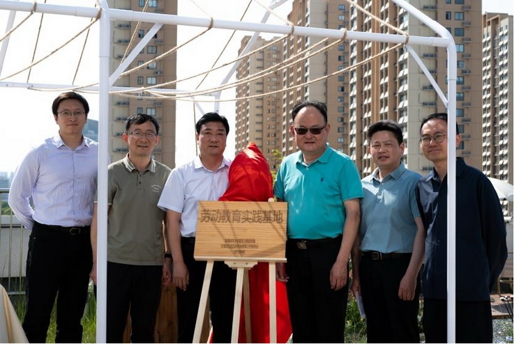校党委常委、副校长李早实地参观了“疗愈花园”营造成果,详细了解学生团队在方案创作、装置搭建、维护管理等环节的实践细节,并指出要持续整合相关资源,将屋顶花园打造为“劳动育人+生态低碳”的示范场景。党委学生工作部部长、后勤管理处处长共同为劳动教育实践基地揭牌。