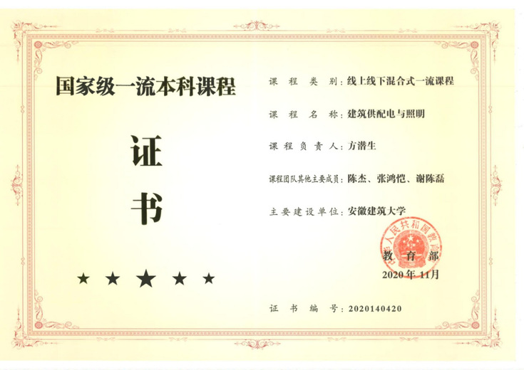 融会贯通,发挥课堂育人主渠道,不断提升育人实效。学院以习近平新时代中国特色社会主义思想为指导,将思想政治教育贯彻学院教育教学全过程,通过教职工政治理论学习等形式,传达贯彻省委、校党委关于课程思政建设制度举措,建设课程思政教学案例,推动学院课程思政教学工作。2020年,教师戚鹏、钟娟在学校课程思政教育比赛中分获二、三等奖,电子信息类专业课程教学团队获批省级思政教学团队,《信号与系统》获得省级课程思政示范课程立项;2021年《电路分析》获得校级课程思政师范课程立项;2022年教师张睿、王萍在学校课程思政教育比赛中分获二、三等奖。五年来,教学运行秩序井然,教育教学研究成果丰硕。3部主编教材入选住房和城乡建设领域学科专业“十三五”规划教材,5部主编教材入选住房和城乡建设领域学科专业“十四五”规划教材,方潜生教授主编的“建筑电气”获首届全国教材奖二等奖;由我校牵头,联合东南大学外国教材中心、同济大学、西安建筑科技大学共同申报的“建筑电气与智能化专业中外教材比较研究”项目入选教育部高等教育中外教材比较研究项目立项;立项省级质量工程项目42项,校级质量工程29项,方潜生教授获得省级教学成果奖特等奖,杨亚龙教授获得省级教学成果一等奖。