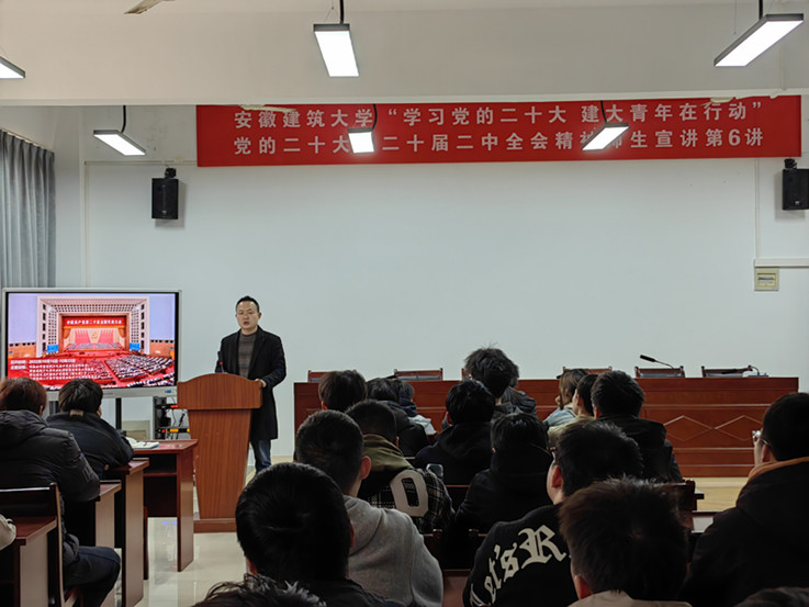 本网讯 3月26日,“学习党的二十大,建大青年在行动”党的二十大、二十届二中全会精神师生宣讲团走进机械与电气工程学院。机械与电气工程学院、环境与能源工程学院辅导员,学生代表、思政委员等100余人参加宣讲会。