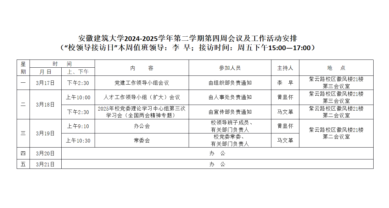 安徽建筑大学2024-2025学年第二学期第四周会议及工作活动安排