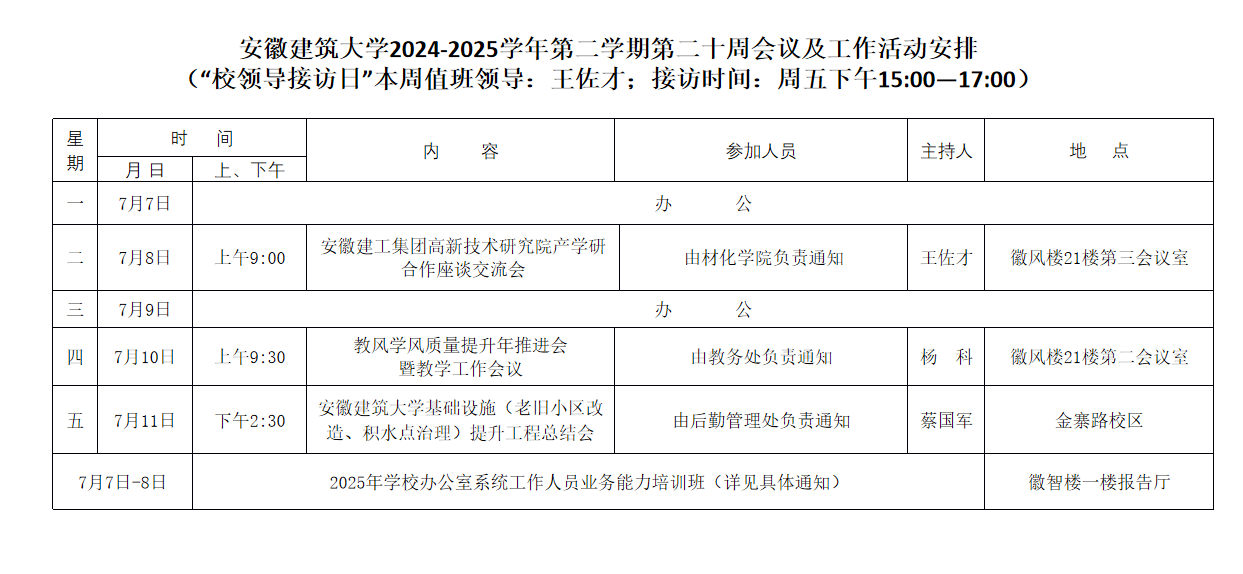 安徽建筑大学2024-2025学年第二学期第二十周会议及工作活动安排
