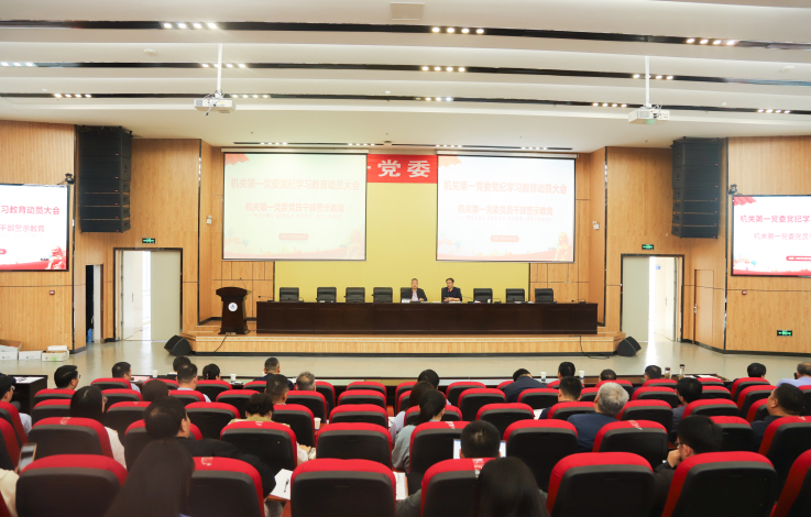 本网讯 根据学校党委、党建工作领导小组的统一部署,在前期组织党委中心组学习、各党支部开展专题党纪学习的基础上,机关第一党委于4月24日下午,组织全体党员在徽风楼二楼报告厅落实党纪学习教育动员部署,集中观看警示教育专题片。校党委常委、副校长闵杰作了动员讲话,会议由机关一党委书记徐军主持。