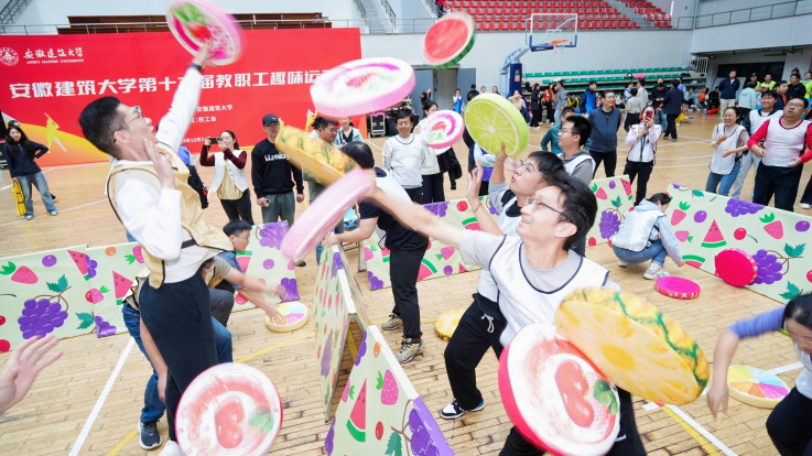 本网讯 10月31日,安徽建筑大学第十六届教工趣味运动会在紫云路校区篮球馆举行。机关第一分会近40名教职工参加了比赛。比赛期间,校党委书记马文革亲临赛场观看比赛。