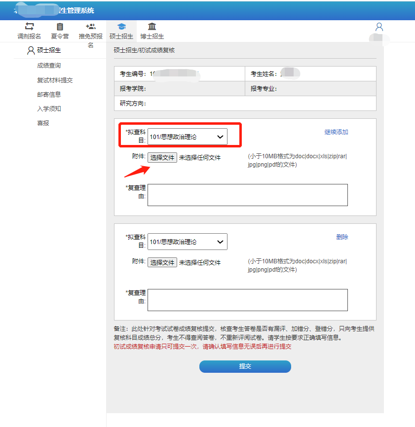 2.受理对象:对初试考试科目成绩有疑问的考生本人。