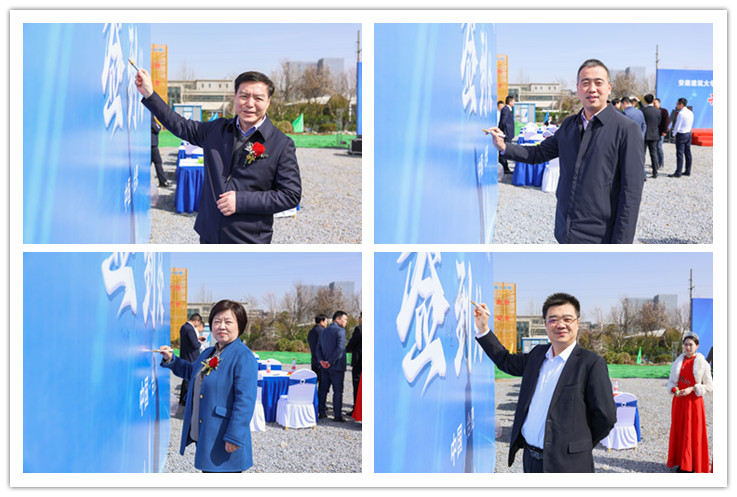中建八局合肥建设有限公司党委书记、董事长丁晓冬,安徽科创工程项目管理有限公司法人代表姚鸿,代表各自单位致辞,他们表示公司一定会以高度负责的态度,做到精心组织、科学管理、文明施工、安全生产,以高标准、高质量完成该项目建设的各项任务,给学校一个满意的答卷。