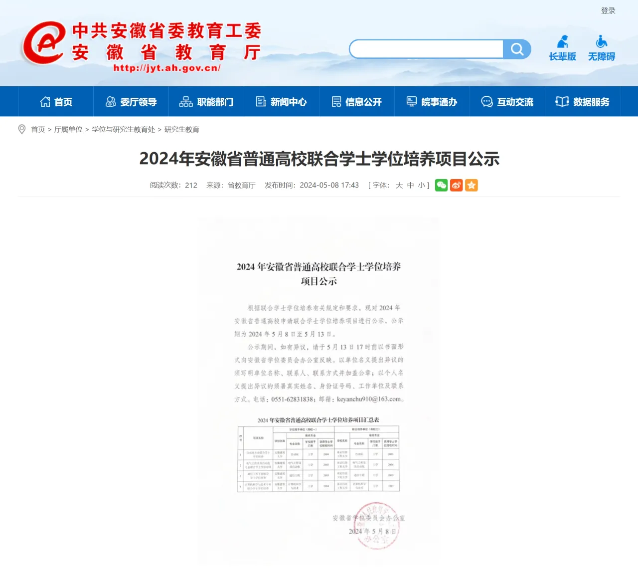 在我校与原全国重点大学、现“双一流”高校——南京信息工程大学连续开展两届本科拔尖人才联合培养的基础上,经安徽省教育厅、江苏省教育厅分别批准,我校与南信大自2024年起联合培养学士,并纳入高考正式招生,经省考试院批准单设院校专业组,编号008,共有四个专业:计算机科学与技术、电气工程及其自动化、通信工程、自动化,每个专业30人,合计120人。