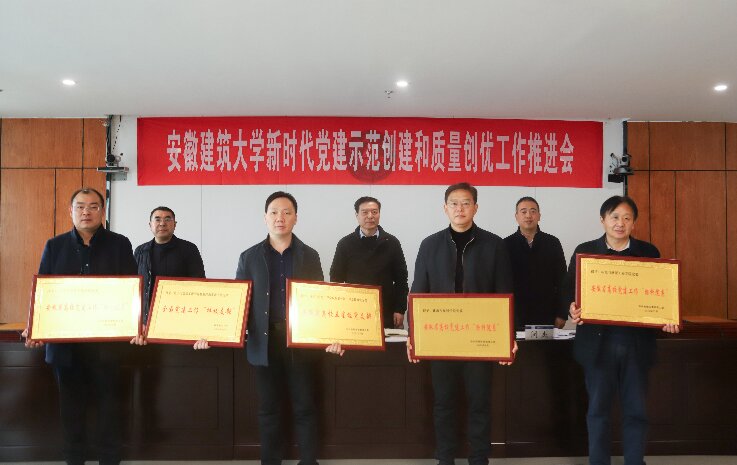 校党委常委、组织部(党校)部长吴运传通报了学校党建“双创”工作和“双带头人”工作室培育创建情况。闵杰宣读了第二批全省高校党建“双创”培育创建单位、星级党支部、学校“双带头人”教师党支部书记工作室建设单位名单。校领导依次为获国家级、省级新时代党建示范创建与质量创优验收单位(培育单位)的学校基层党组织,学校教师党支部“双带头人”工作室等授牌。